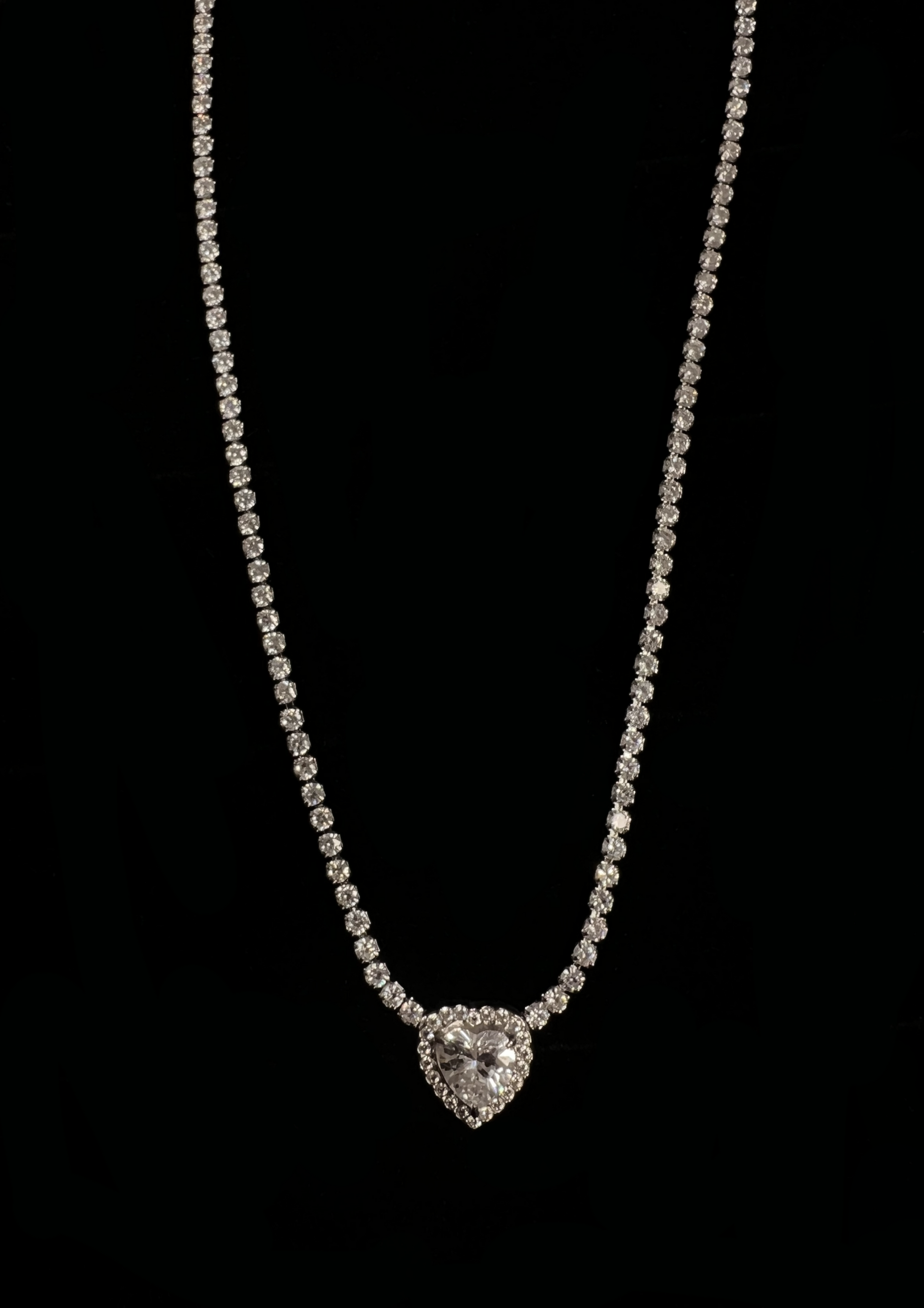 Collana girocollo a catena tennis, un vero e proprio abbraccio di luce per il tuo collo. Un pendente a forma di cuore, incorniciato da piccoli zirconi bianchi, spicca al centro. La chiusura a scorrimento (o "zip") permette di regolare facilmente la lunghezza per adattarla perfettamente al tuo stile. Disponibile in acciaio inossidabile color argento e oro, questa collana è perfetta per aggiungere un tocco romantico e brillante al tuo stile, sia per un'occasione speciale che per tutti i giorni.