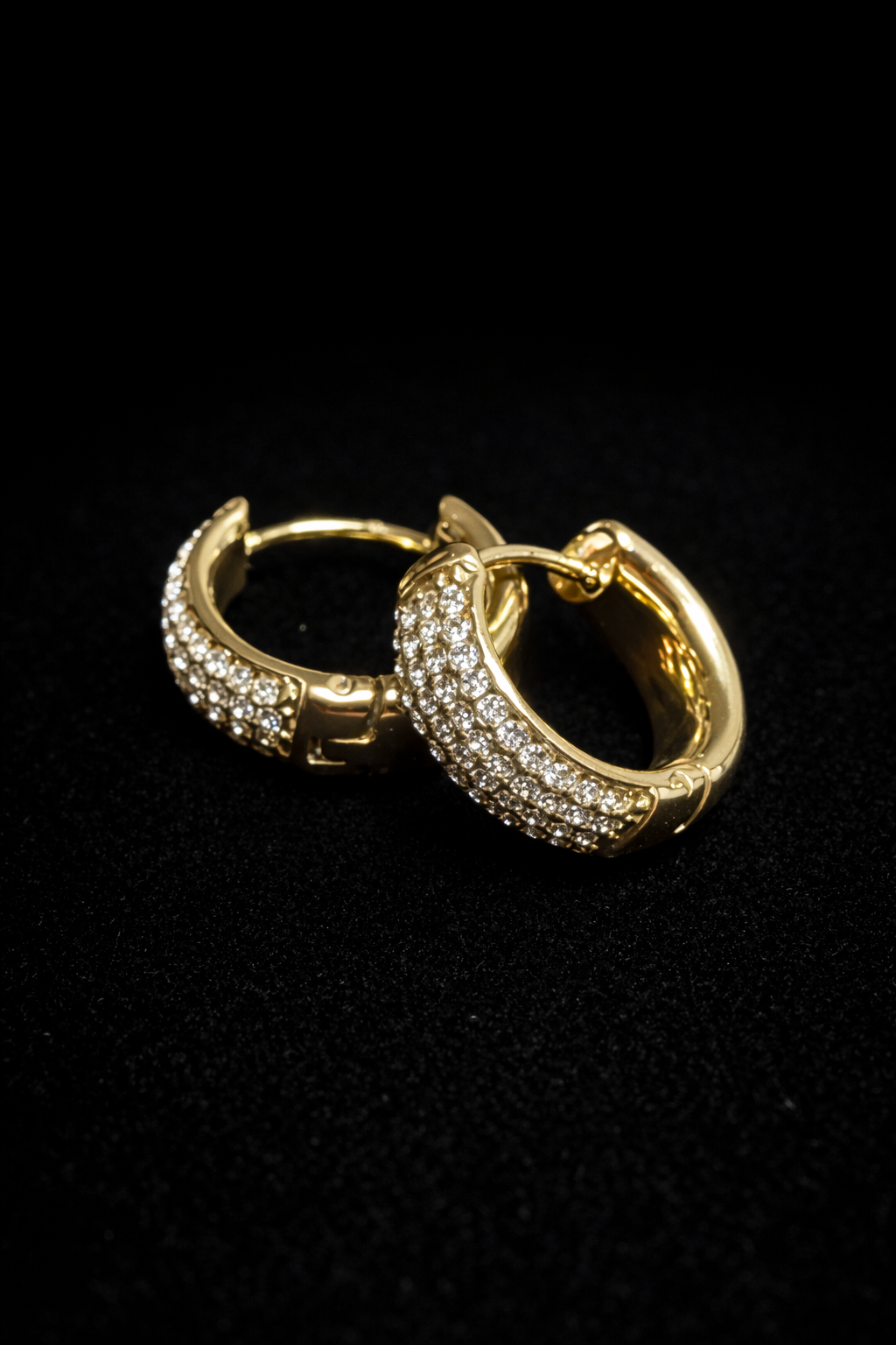 Eleganti cerchietti bombati in acciaio inossidabile, impreziositi da un fitto pavé di lucenti